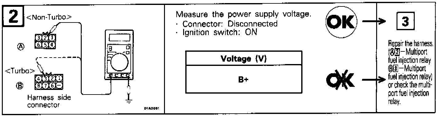 2. If the MAF sensor output Voltage is other than 0 when the ignition switch is turned on engine off), check for a faulty MAF sensor or Engine Control Module (ECM).