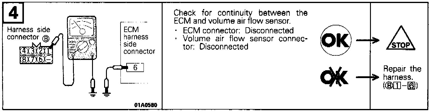 3. If the engine will idle even if the MAF sensor output Voltage is out of specification check for the following conditions;