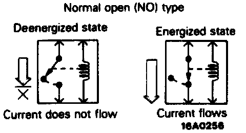 NOTE: The deenergized state means that no current is flowing through the coil and the energized state means that current is flowing through the coil.When a normal close type relay as illustrated here is checked. there should be continuity between terminals (1) and (2) and between terminals 3 and 4 when the relay is deenergized, and the continuity should be lost between terminals 3 and 4 when the battery voltage is applied to the terminals 1 and 2. A relay can be checked in this manner and it cannot be determine if a relay is okay or faulty by checking its state only when it is deenergized (or energized).