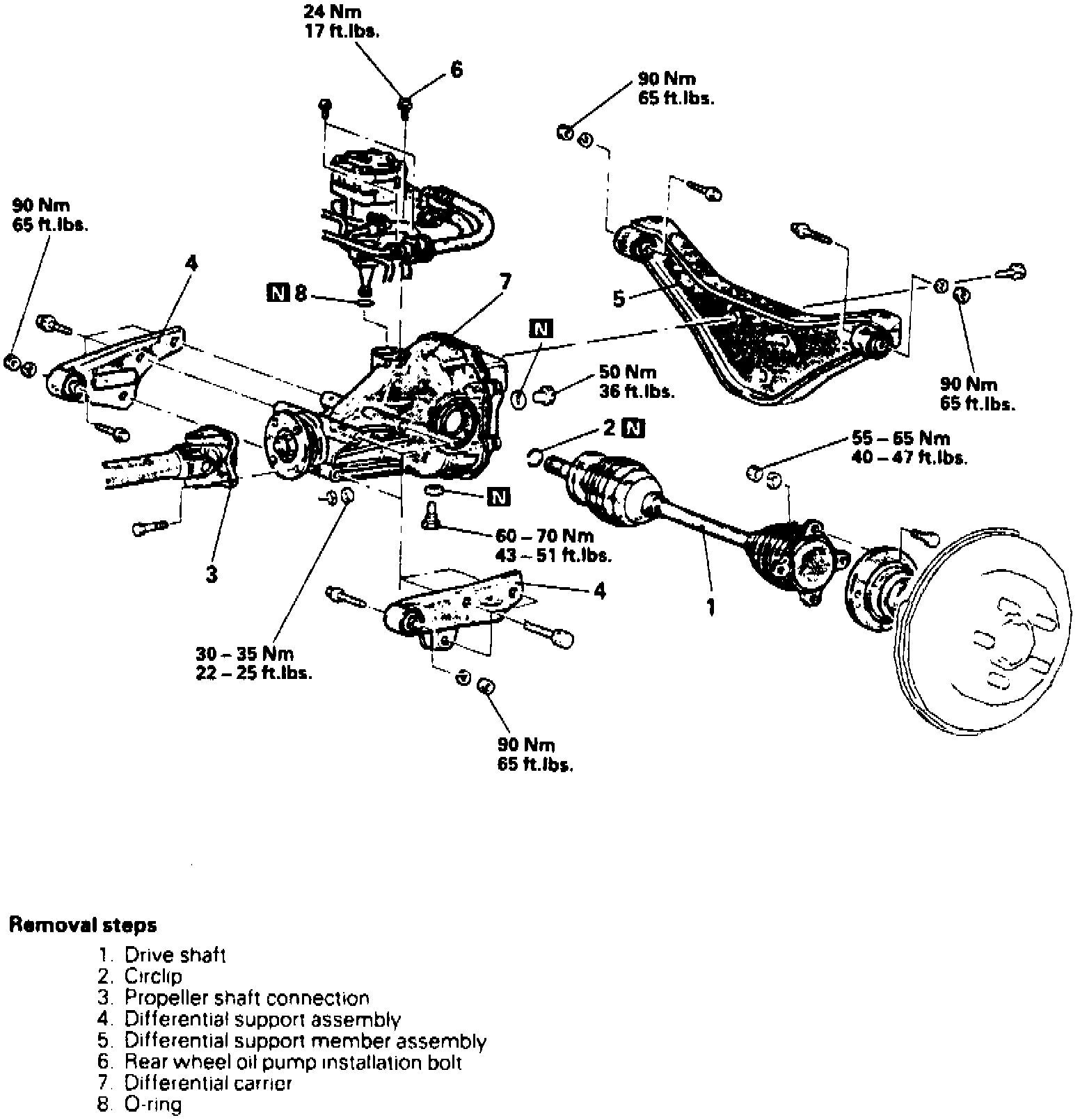 1. Drain differential fluid into an appropriate container.2. Remove center exhaust pipe.