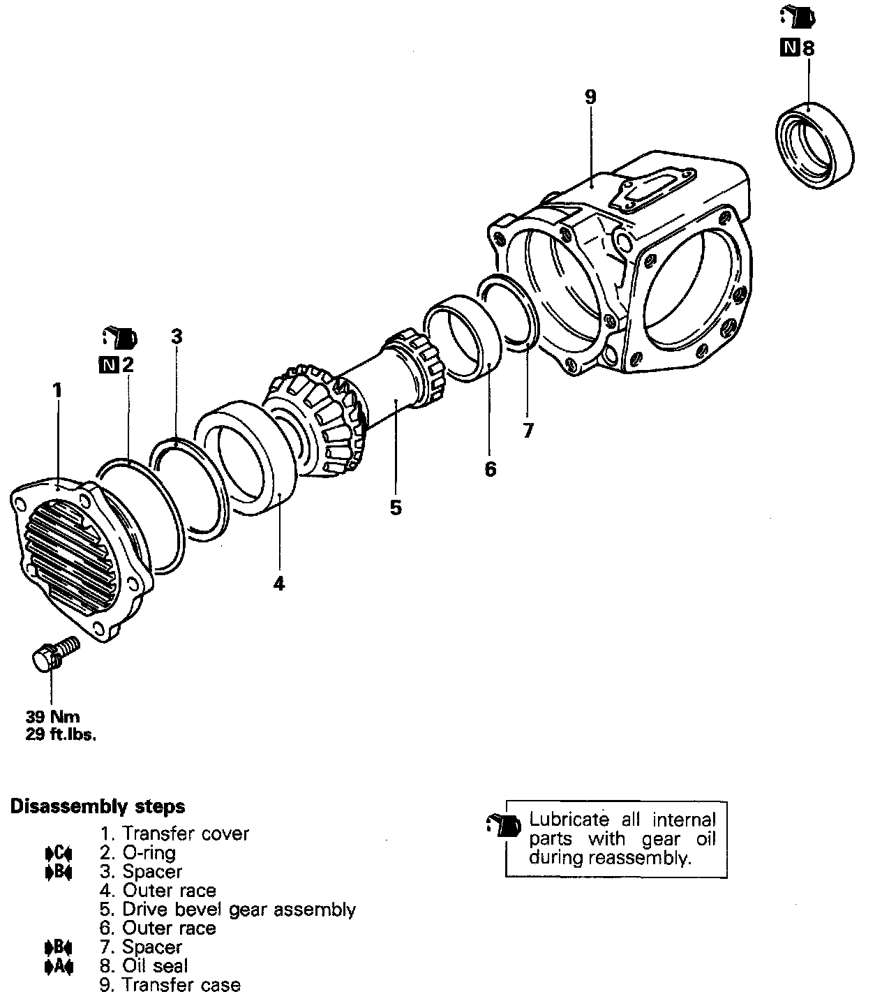 (1) Use the existing spacer to assemble the transfer case.