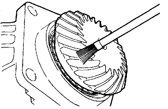 (1) Apply a light and uniform coat of machine blue or red lead to the driven bevel gear teeth (both sides) using a brush.