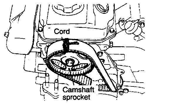 7. Remove the cord applied during removal and make sure the timing marks line up as shown.