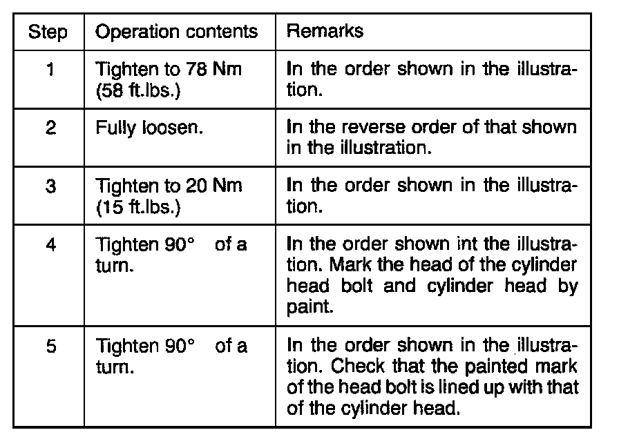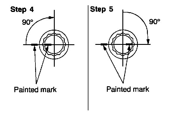 4. Always torque to exactly 90° where instructed, if you torque less than 90° the bolt will loosen. If you exceed 90° remove the bolt and begin the entire procedure again from step 2.