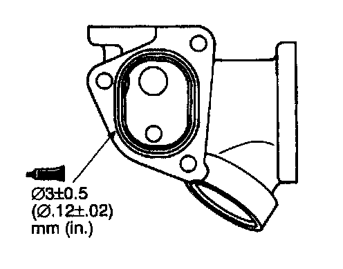 10. Apply sealant, part No. MD970389 or equivalent, to the thermostat case assembly as shown in the image above.