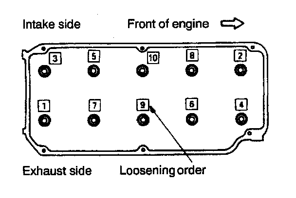 24. Loosen the head bolts in 2 to 3 steps in the order shown in the image above. Remove the head bolts (39).