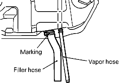 2. Connect the leveling hose, from the tank, approximately 1.6 in. (40mm) onto the filler neck.