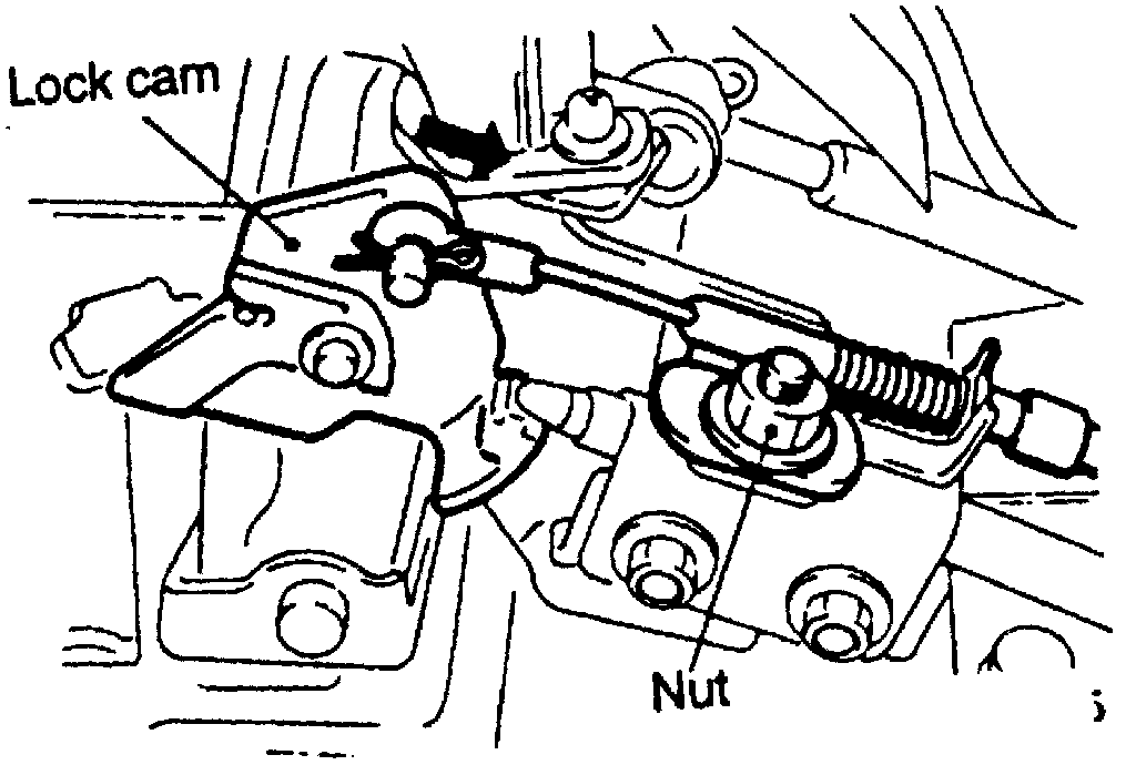 3. While pressing gently upon lock cam in direction of arrow, Fig. 17, press on cable to remove slack, then tighten nut.