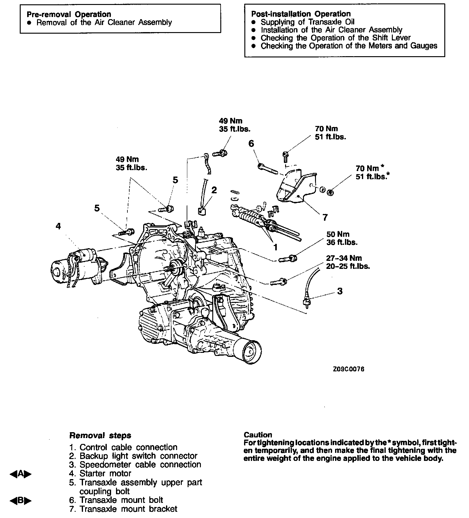CAUTION: Be careful not to tilt the transaxle assembly.