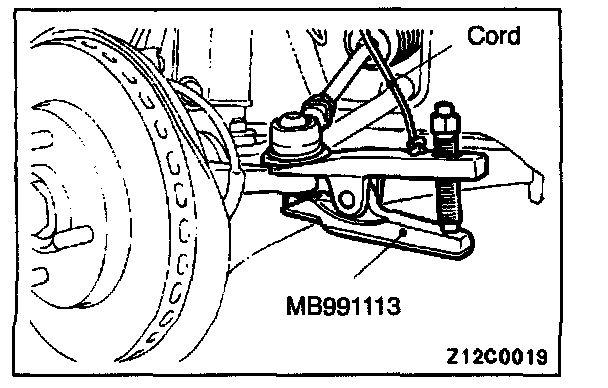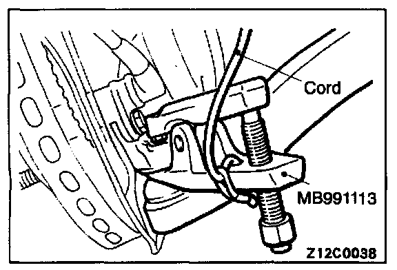 1. Be sure to tie the cord of the special tool to a nearby part.