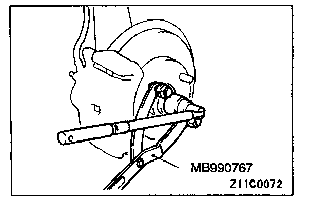 Use the special tool to disconnect the tie rod end from the knuckle.