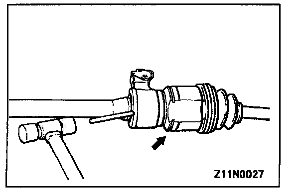 1. If the inner shaft and transaxle are tightly joined, tap the center bearing bracket lightly with a plastic hammer, etc. to remove the drive shaft and inner shaft (LH) from the transaxle.