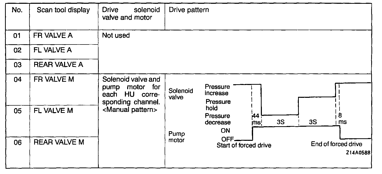 2. Actuator testing is only possible when the vehicle is stationary. When force-driving the actuator, if the vehicle speed reaches 10 km/h (6 mph), forced-driving is cancelled.