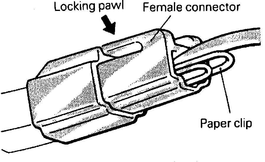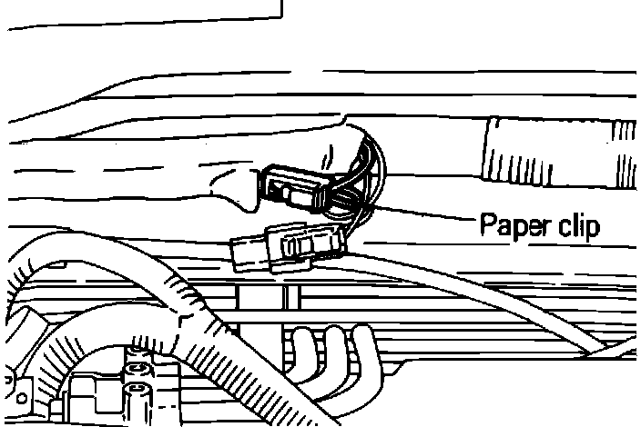 2. Connect a tachometer. If using a primary current pulse detection type tachometer, insert a paper clip into the back side of the 1-pin harness connector, as shown above, then connect a tachometer to the paper clip.