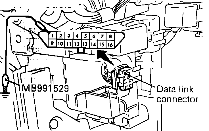 3. Use a jumper wire to ground the diagnostic test mode terminal of the test harness connector. (Fig. 1)