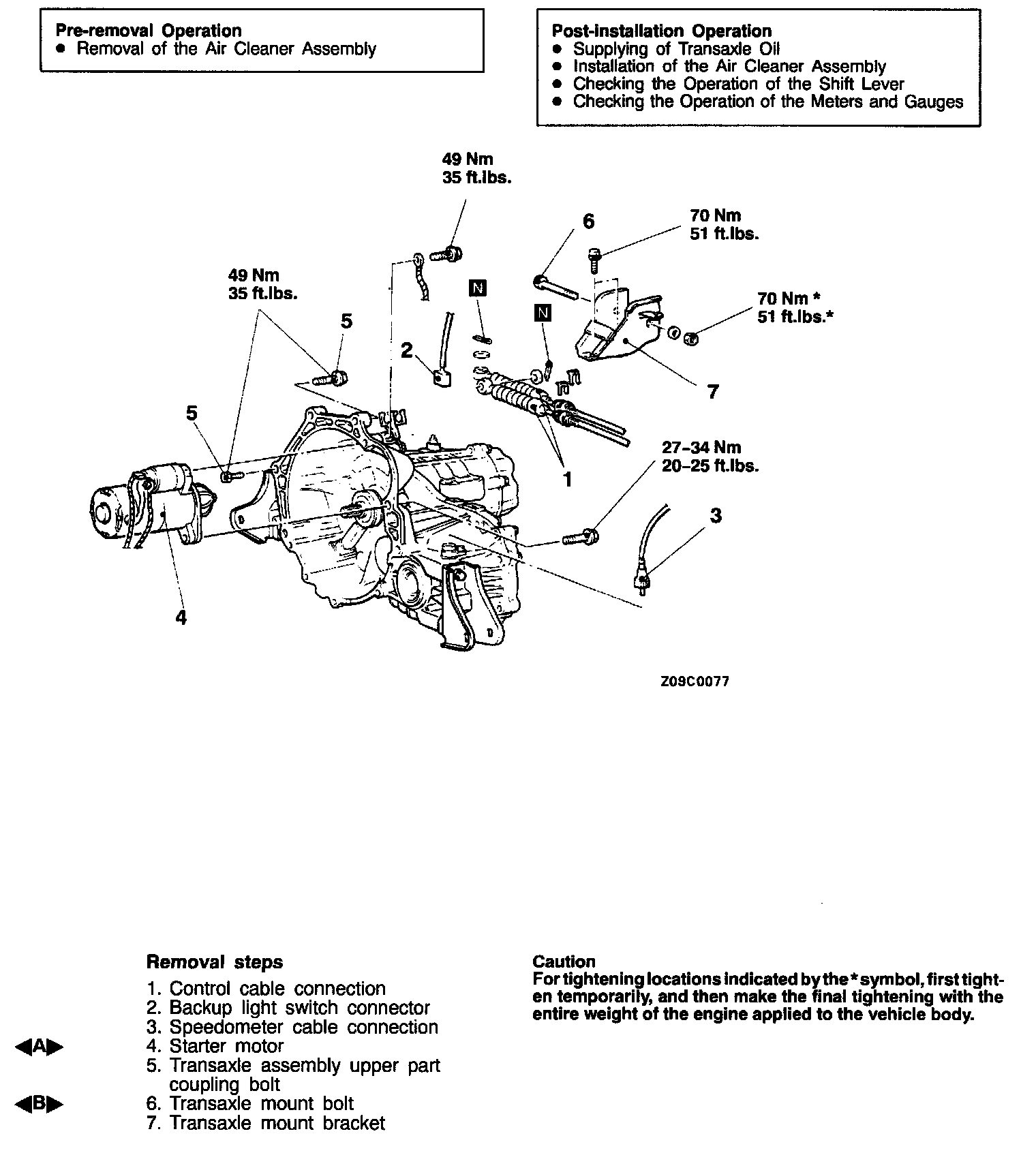 CAUTION: Be sure not to tilt the transaxle assembly.
