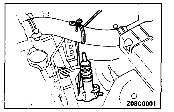 Remove the clutch release cylinder and then secure at the body side without disconnecting the oil line coupling.