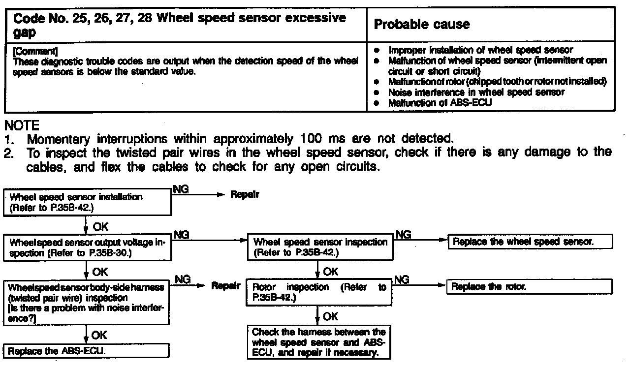 Code # 25, 26, 27, 28 Wheel Speed Sensor Excessive Gap:
