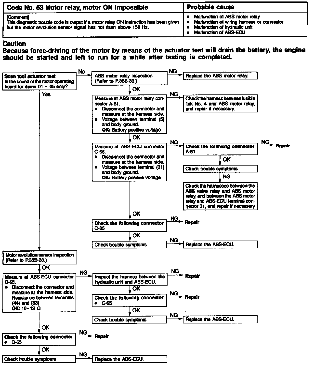 Code # 53 Motor Relay, Relay ON Impossible: