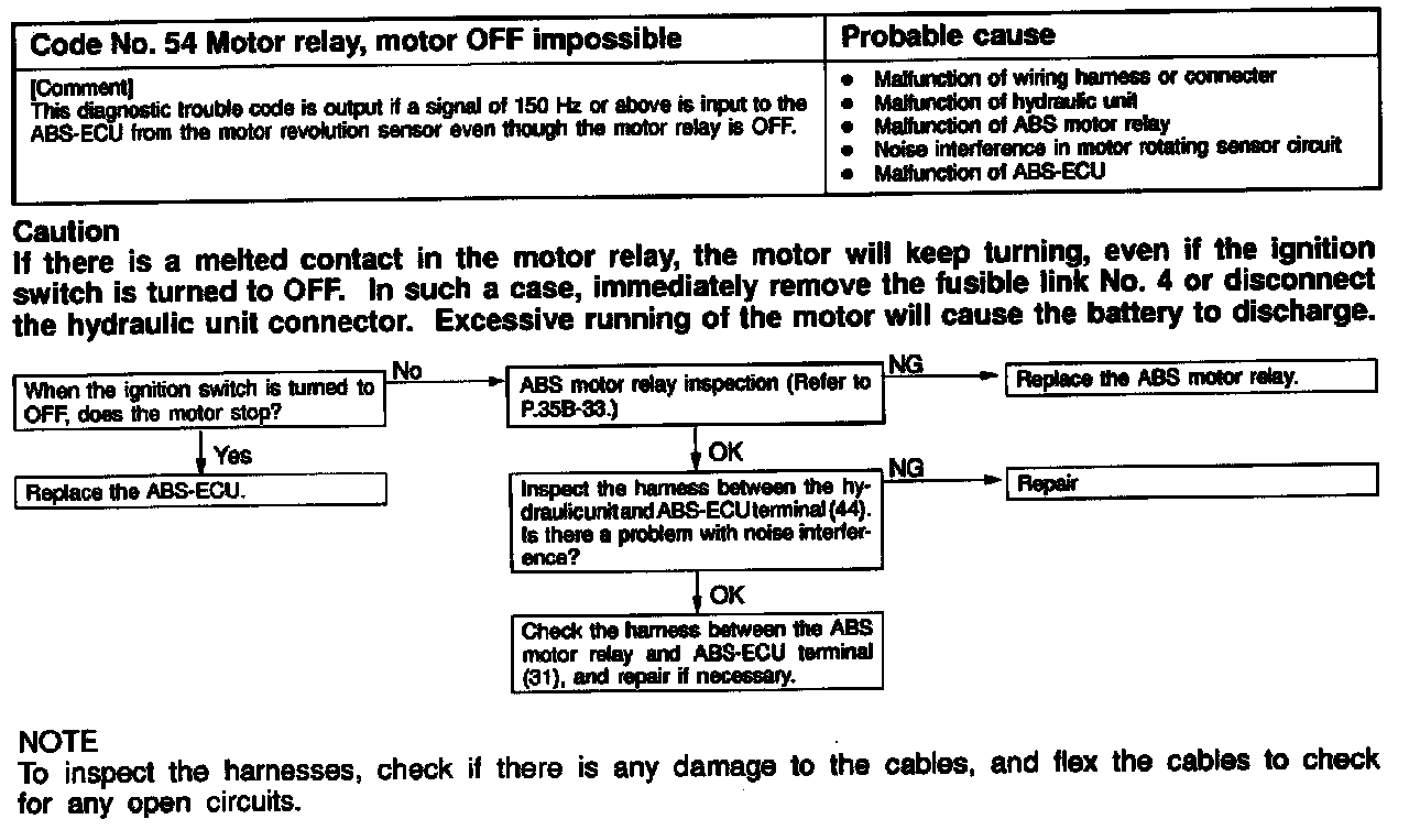 Code # 54 Motor Relay, Motor OFF Impossible: