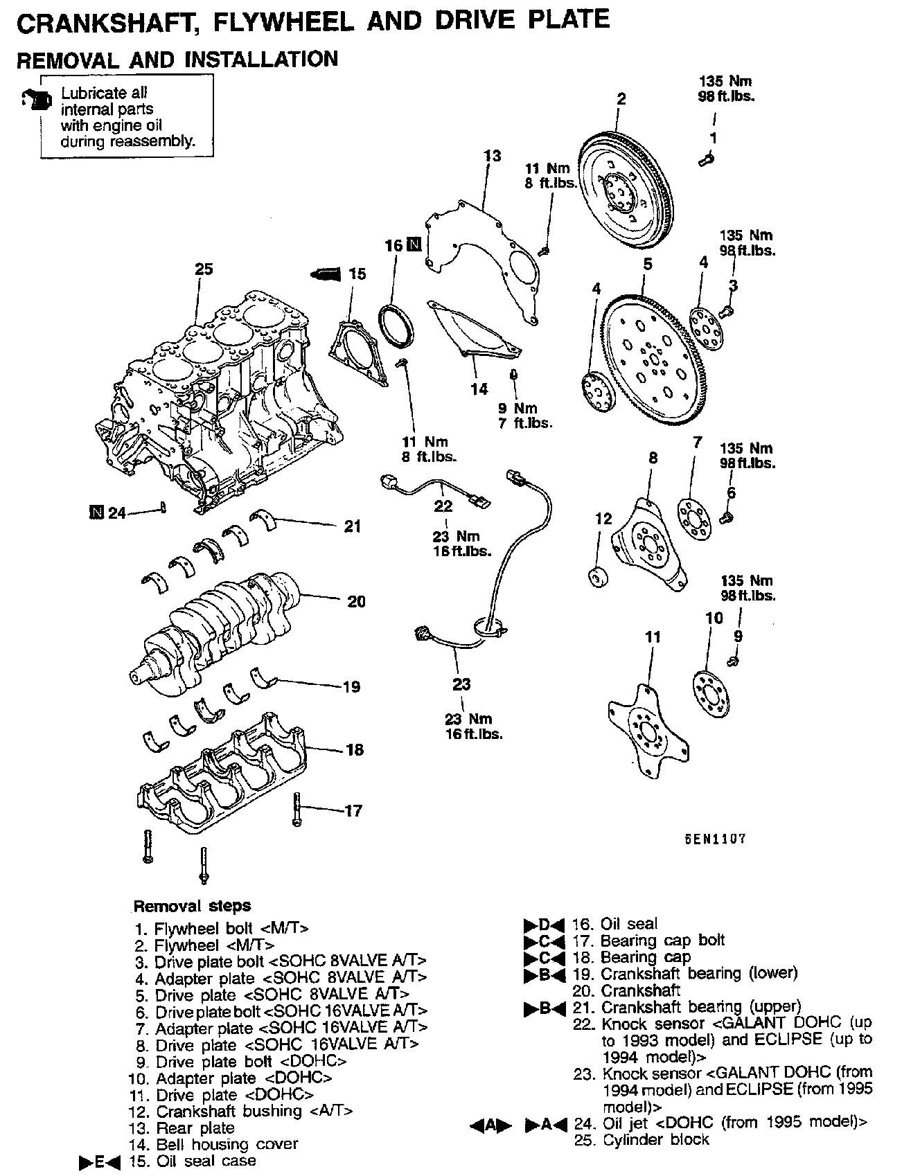 (4) Tighten the bolts to 25 Nm (18 ft.lbs.) in the specified tightening sequence.