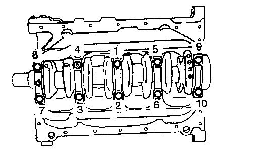 (7) According to the specified tightening sequence, give a 90° to 100° turn to each bolt and make sure that the paint mark on the bolt and that on the cap are in alignment.