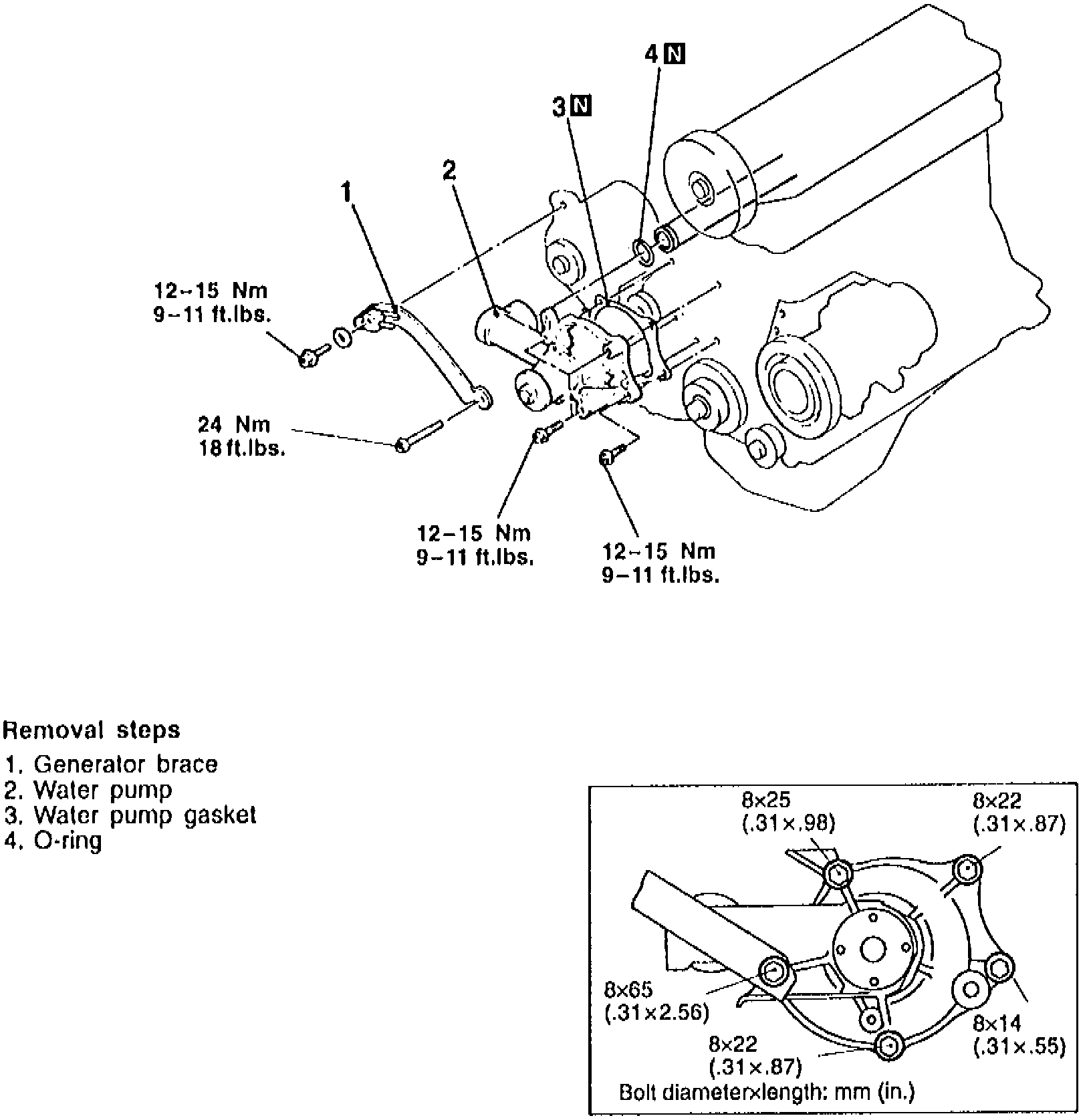 1. Relieve fuel system pressure as outlined under Technician Safety Information, then drain engine coolant into a suitable container.2. Remove timing belt as outlined under Timing Belt.