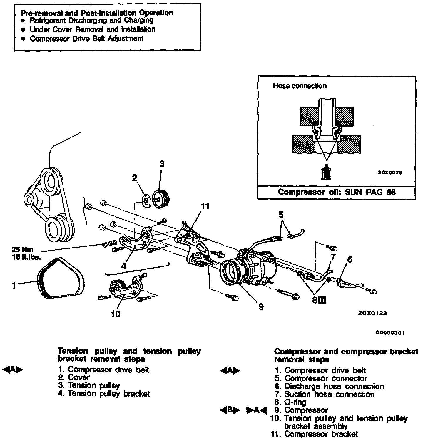 (3) Remove the compressor drive belt.