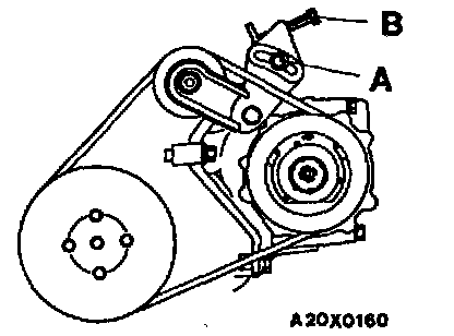 (1) Loosen nut "A" for holding the tension pulley.