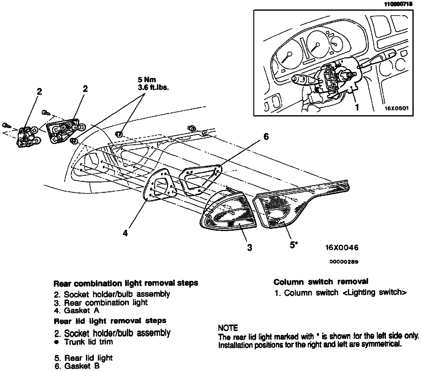 NOTE: The rear lid light marked * is shown for the left side only. Installation positions for the right and left are symmetrical.