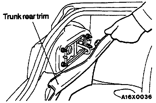 Remove the clip, pull the trunk rear trim into the passenger compartment as shown in the figure, and remove the mounting nuts.