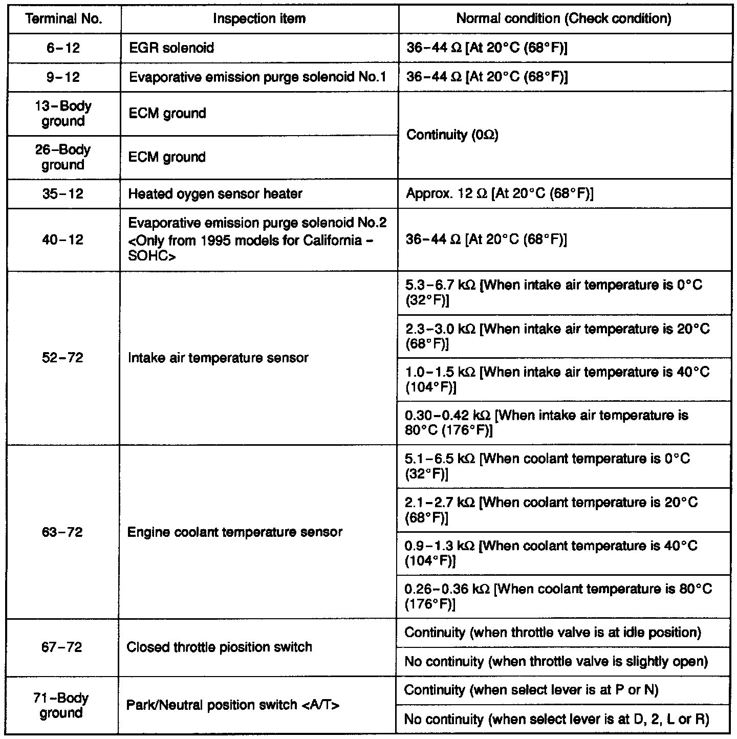 4. If the Ohmmeter shows any deviation from the normal condition, check the corresponding sensor, actuator and related electrical wiring, and then repair or replace.