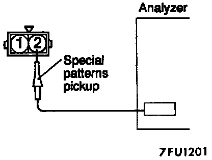 1. Connect the analyzer special patterns pickup to Electronic Control Module terminal 1 to analyze the No.1 cylinder, connection terminal 2 to analyze the No.3 cylinder, connection terminal 14 to analyze the No.2 cylinder and connection terminal 15 to analyze the No.4 respectively.