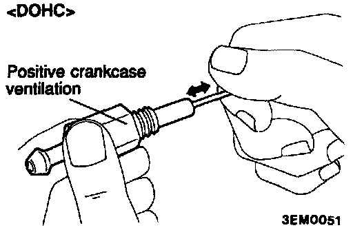 1. Insert a thin rod into the positive crankcase ventilation valve from the side shown in the illustration (rocker cover installation side), and move the rod back and forth to confirm that the plunger moves.