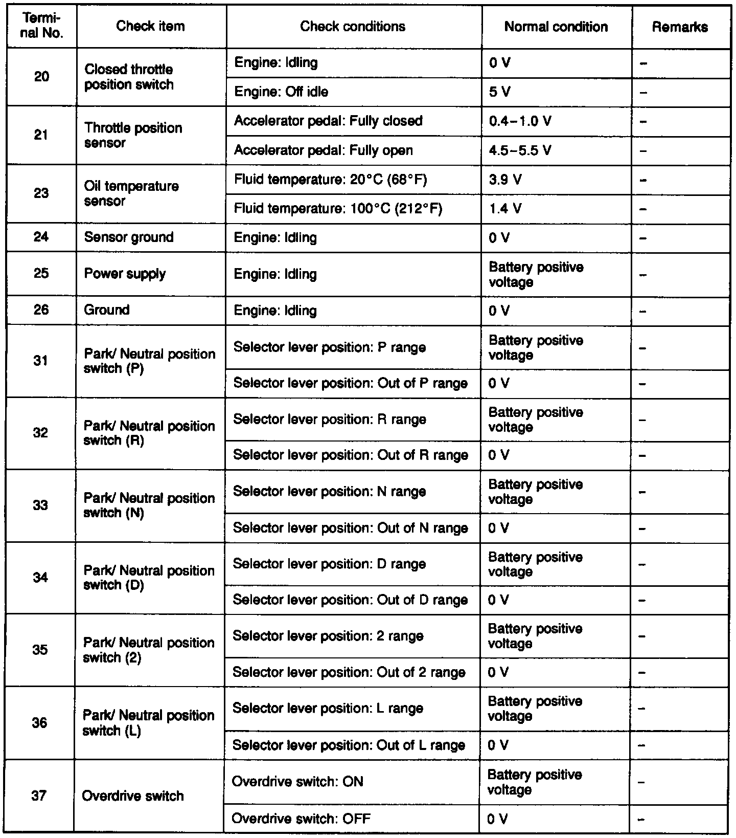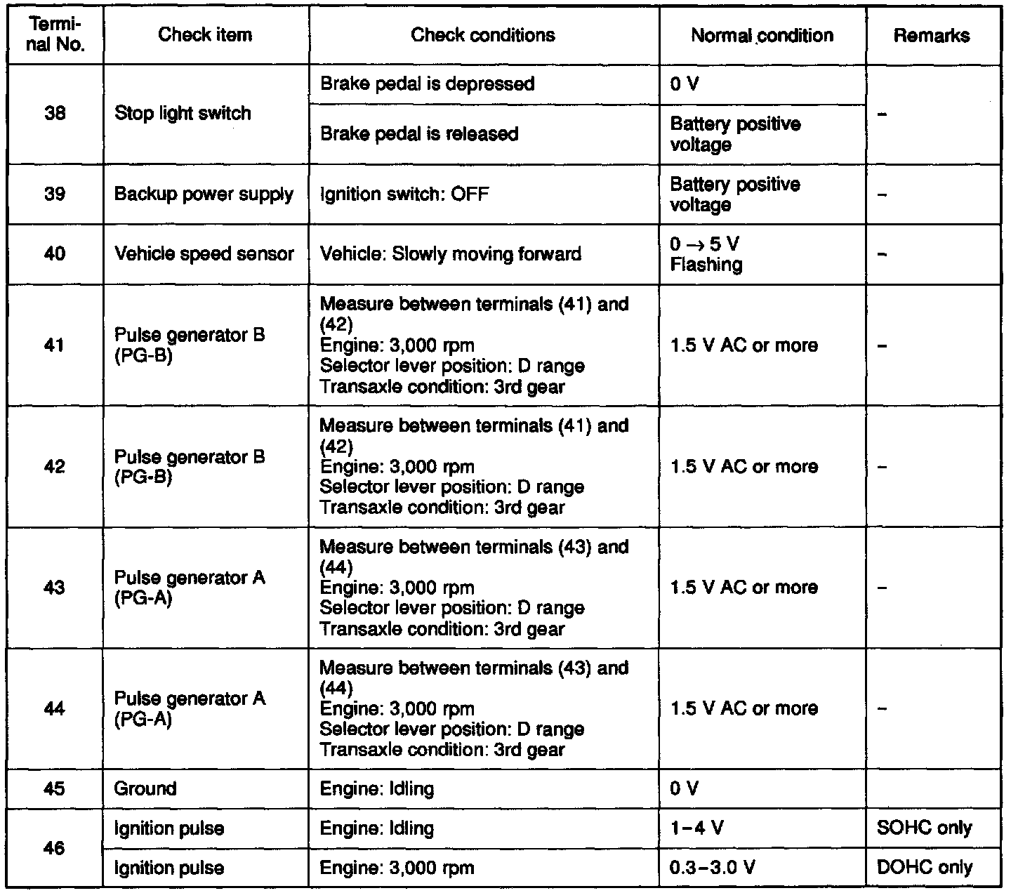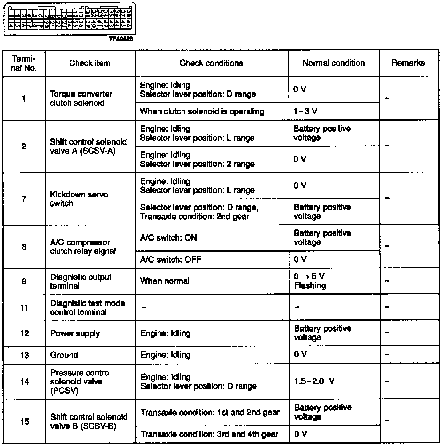 Pinout Values and Diagnostic Parameters