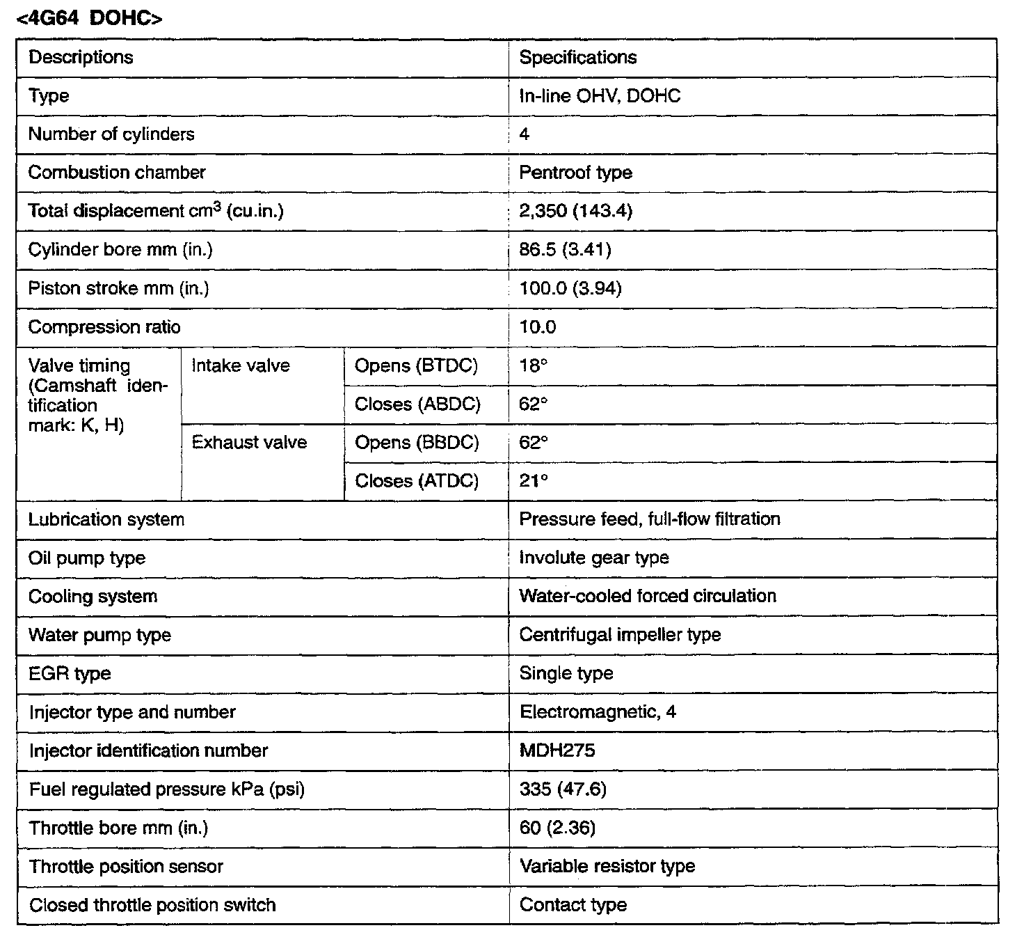 Galant L4-2350cc 2.4L DOHC
