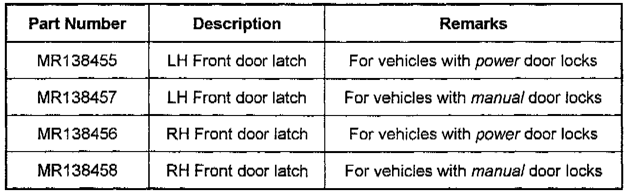 This bulletin contains information about a change to the front door latches (both power and manual door locks) used on the 1994-96 Galant.