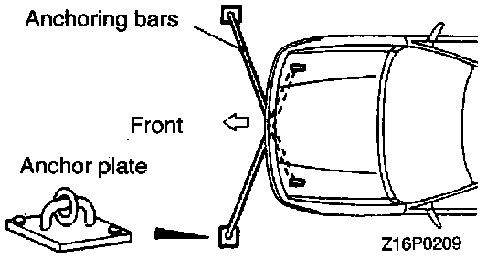 1. Attach anchoring bars on the tie-down brackets and secure their ends to the anchor plates.