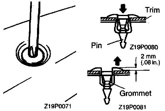 CAUTION: Do not push the pin inward more than necessary because it may damage the grommet, or the pin may fall in, if pushed too far.
