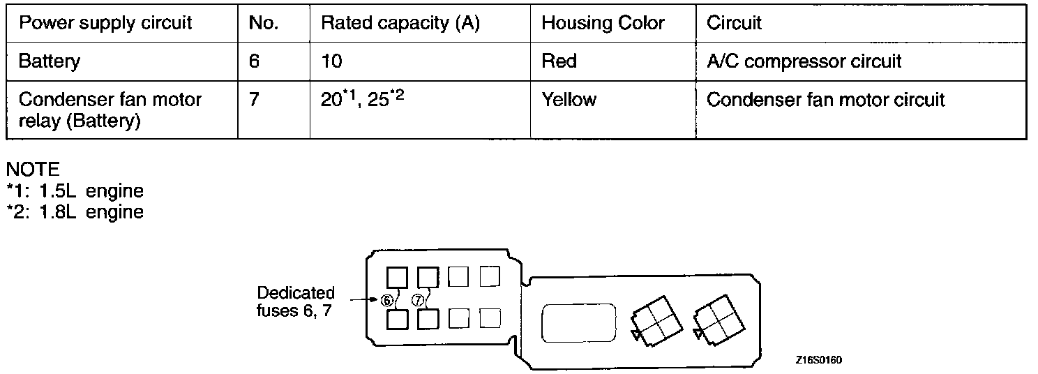 Dedicated Fuse 6, 7 (A/C Compressor Clutch Relay Bracket In Engine Compartment):