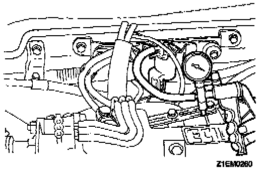 NOTE: When disconnecting the vacuum hose, always make a mark so that it can be reconnected at original position.1. Disconnect the vacuum hose (black, red stripes) from the solenoid valve.