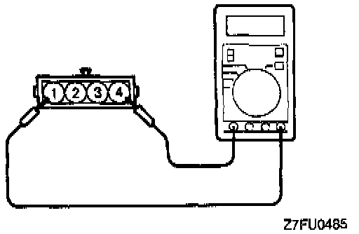 3. Measure the resistance between the throttle position sensor side connector terminal No. 2 and terminal No. 4.