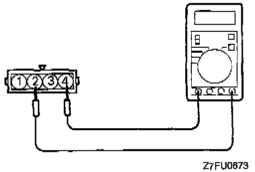 2. Measure the resistance between the throttle position sensor side connector terminal No. 1 and terminal No. 4.