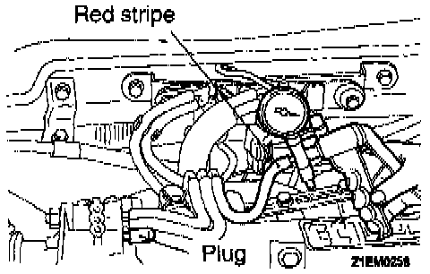 1. Disconnect the vacuum hose (red stripes) from the throttle body and connect it to a hand vacuum pump.