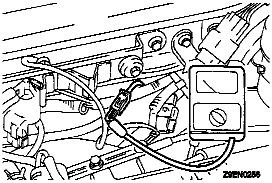 NOTE: Do not use the scan tool. If tested with the scan tool connected to the data link connector, the ignition timing will not be the basic timing but be ordinary timing.