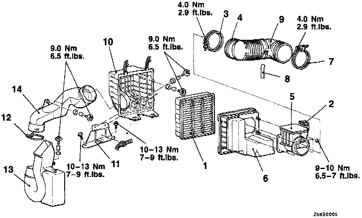 VOLUME AIR FLOW SENSOR REMOVAL STEPS