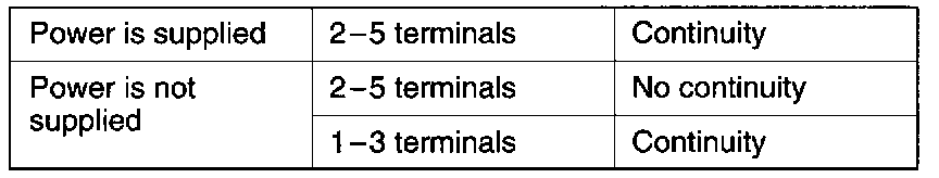 2. Apply voltage to terminal 3, and check the continuity between the terminals when terminal 1 is grounded.