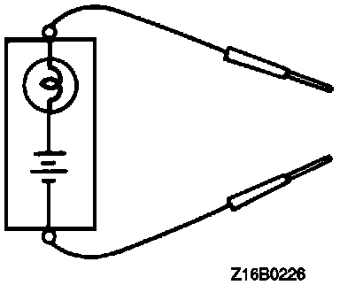 A test light consists of a 16 V bulb and lead wires. It is used to check voltages or short circuits.