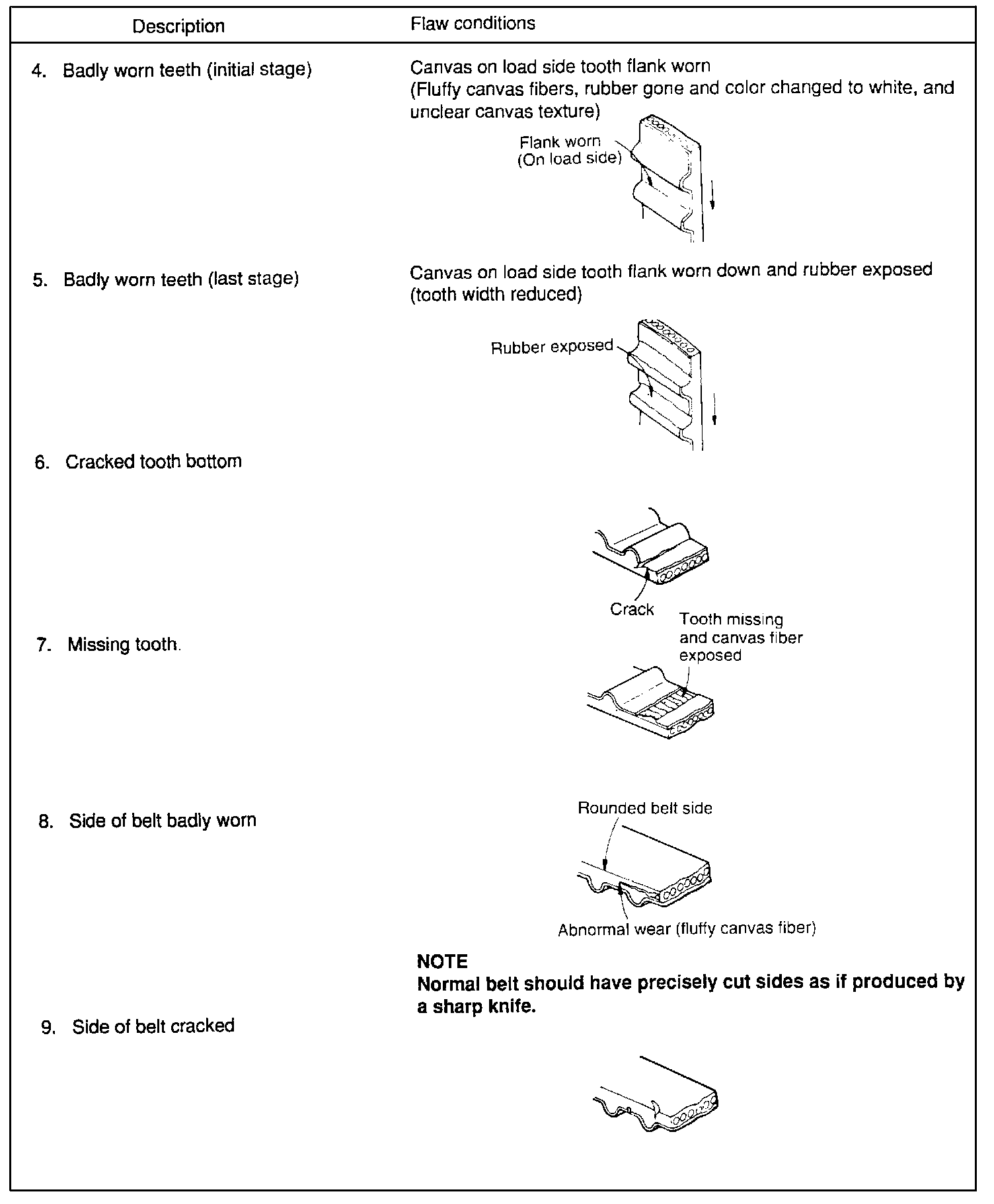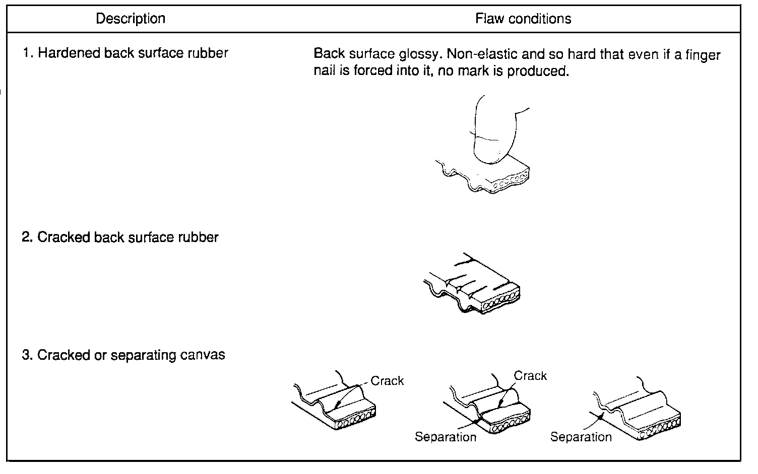 2. When the engine is overhauled or belt tension adjusted, check the belt in detail.