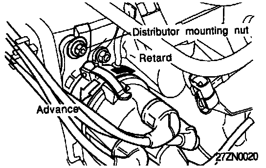 6. If the timing is incorrect, loosen the Distributor's holding nut, and then turn the Distributor until the timing is correct.
